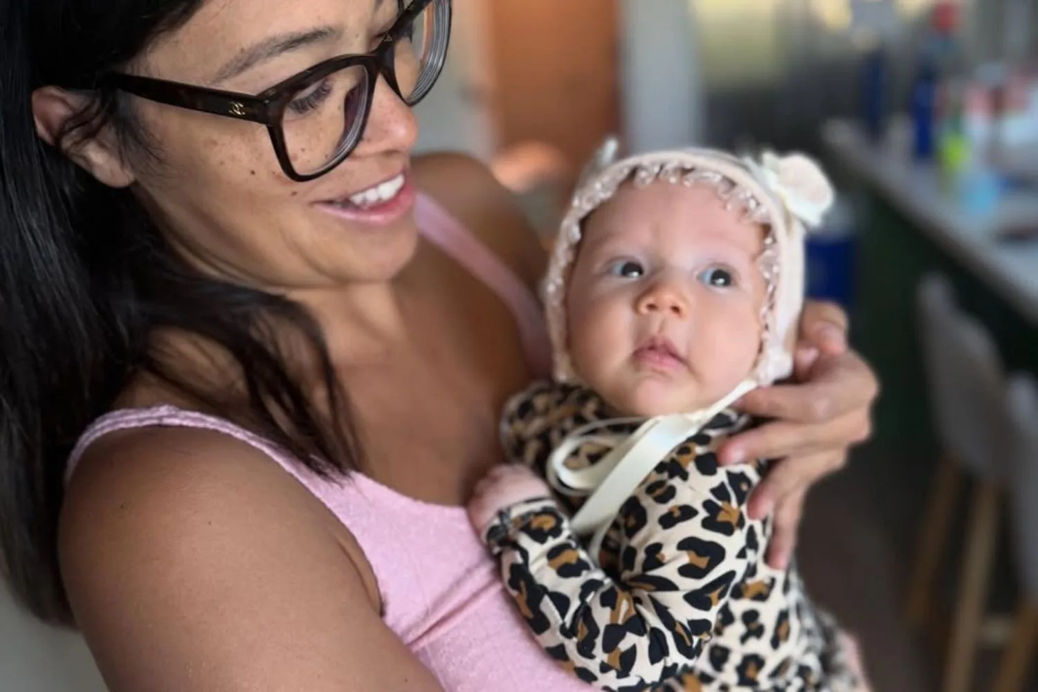Additional pictures showed the newborn smiling in cute outfits, and one particularly heartwarming shot captured the new parents-of-two sharing a sunset beach kiss with Lucille nestled between them.