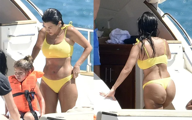 Sunning herself on holiday in Corsica, France, Kourtney Kardashian stripped down to a string bikini on July 26 to spend a blissful day swimming off a yacht with her three kids— Mason, 9, Penelope, 7, and 4-year-old Reign — and friends including longtime pal Simon Huck. The next day the reality star, 40, posted a photo of herself from her day in the sun, sitting on a rock in the yellow bikini while wearing a snorkelling mask. She captioned the pic with three spaghetti emojis and the same day took to Instagram stories to post a video of herself chowing down on spaghetti next to a pool with her model sister Kendall Jenner, 23.