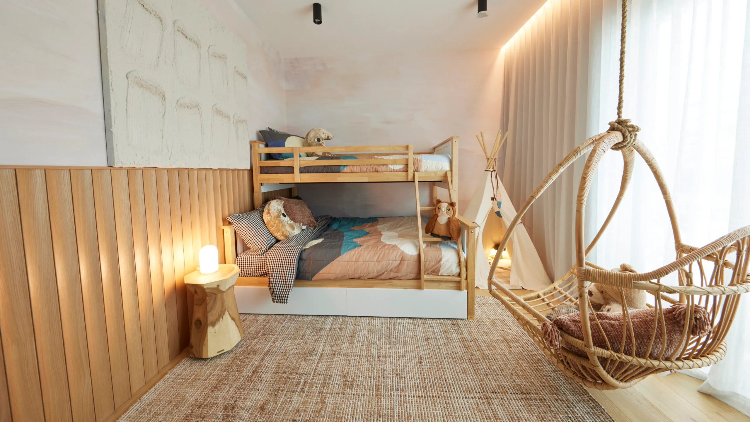 Ricky and Haydn spent $39,119 and nailed it this week. The judges loved everything about their spaces, particularly the games room, which perfectly catered to the holiday vibe of Phillip Island. Tied for first place, they scored 28 points overall.