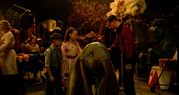While the basic structure of baby Dumbo’s story is preserved, some elements – comic relief crows, a mouse sidekick – are abandoned, and a war veteran single dad (Colin Farrell) and his two kids are added to the mix. Still set in the 1940s, Dumbo has an old world charm, with Burton keeping his flair for visual spectacle on point instead of allowing things to go over the (big) top.