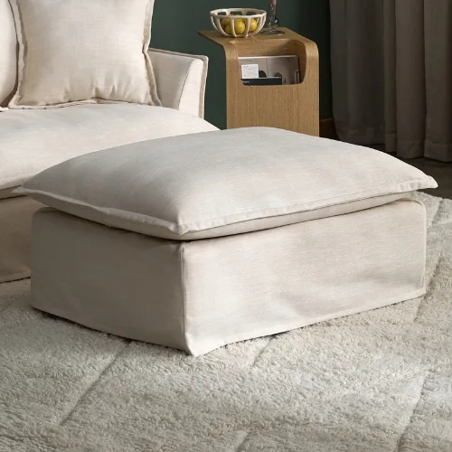 This generously oversized ottoman pairs perfectly with your reading chair — plush, neutral-toned, and so comfy you might just put your feet up and never get back up.
