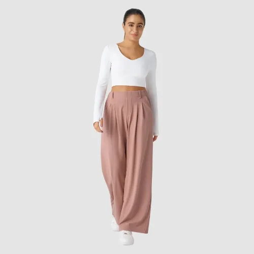 These pants mash up polished tailoring details, like a high waist, pleated look and straight‑leg silhouette, with super stretchy, breathable 4‑way fabric that feels closer to leggings than classic trousers.